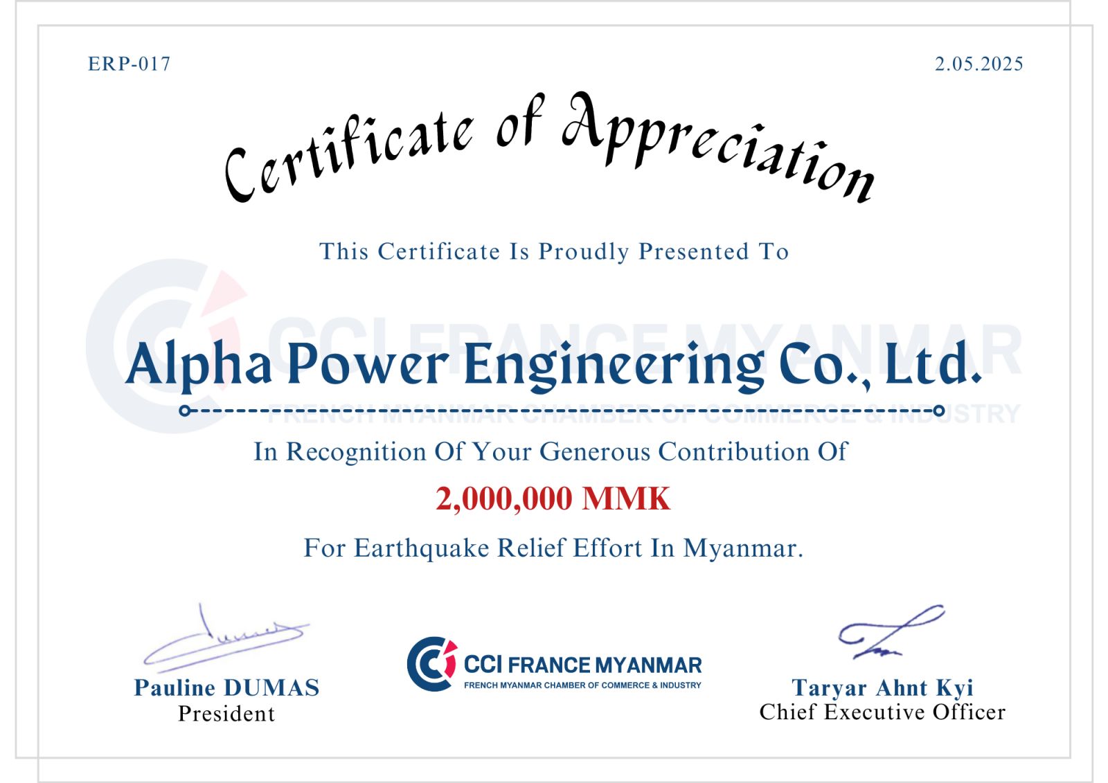 Donation for Earthquake Relief Effort In Myanmar