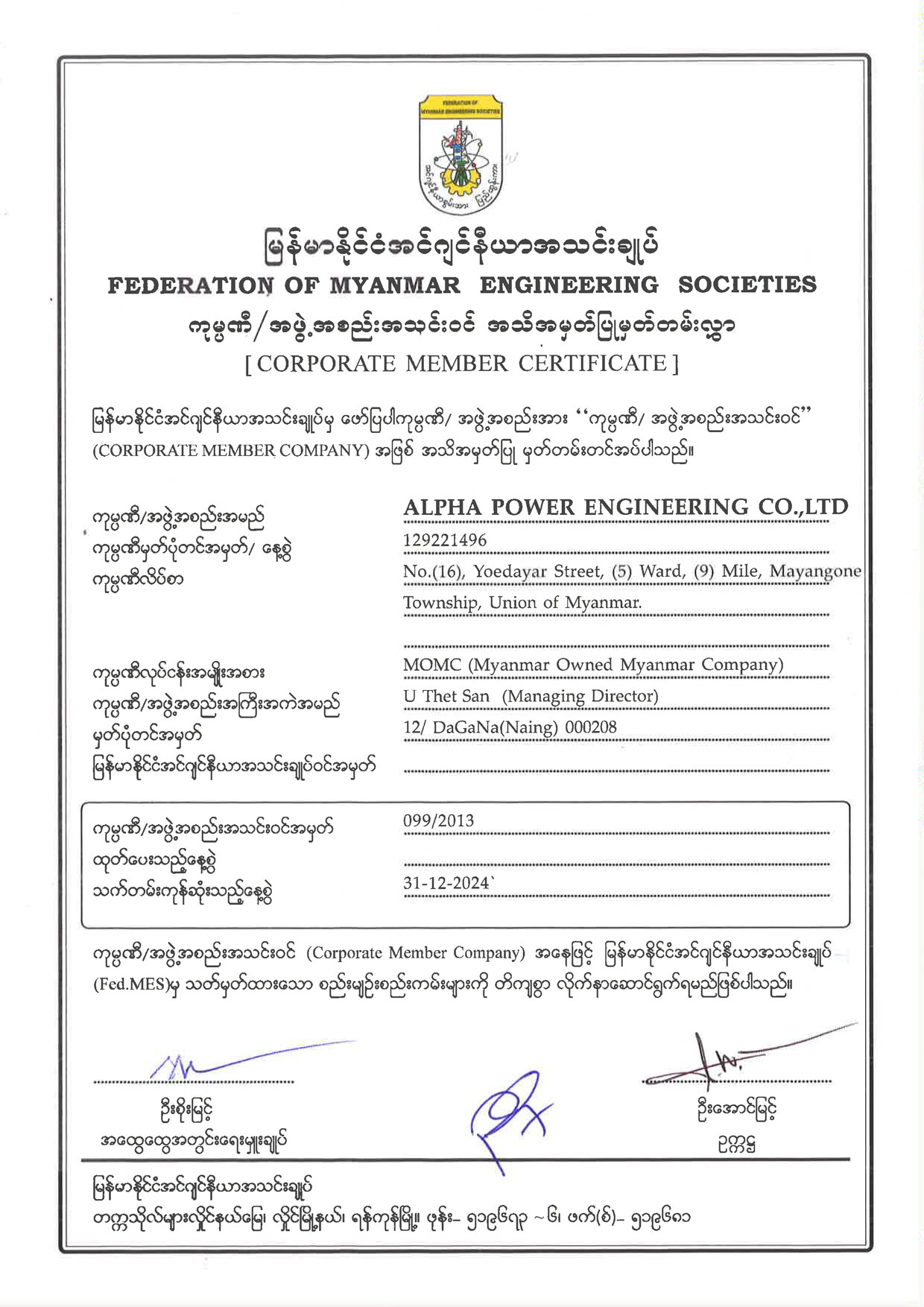 မန်နေးဂျင်းဒါရိုက်တာ၏ နှုတ်ဆက်စကား